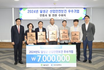 대구 달성군, 산업안전보건 우수기업 인증서 수여식 개최[헤럴드경제(대구)=김병진 기자]대구 달성군은 대구상공회의소와 함께 5일 개최한 '2024년 달성군 산업안전보건 우수기업 인증서 및 현판 수여식'에서 안전한 일터 만들기에 솔선수범한 달성군 관내 우수기업에 인증서와 현판을 수여했다.이번에 2024년 달성군 산업안전보건 우수기업으로 선정된 곳은 주식회사 가온하이텍, ㈜달구지푸드, 주식회사 라지, 에이스이노텍(주), ㈜하이박 등 총 5개 기업이다.달성군은 올해 선정된 5개 사업장에 대해 산업안전보건 우수기업 인증서 및 현판을 수여하고, 근로시설 및 안전장비 개선에 활용할 수 있는 노동환경개선 사업비를 기업당 최대 700만원 지원한다.달성군과 대구상공회의소는 작년부터 달성군 산업재해 예방을 위한 업무협약을 맺고, 안전하고 건강한 작업환경 구축에 적극적인 기업을 인증하고 인센티브를 제공함으로써 산업재해 예방 문화를 확산시키기 위해 산업안전보건 우수기업 인증사업'을 추진해 오고 있다.최재훈 대구 달성군수는 "역경제 성장을 뒷받침하는 안전한 일터 만들기에 앞장서 온 기업인 여러분의 노고에 감사드린다"며 "앞으로도 우리 군은 기업의 애로사항과 제안을 경청하고 적극 지원할 수 있도록 계속 노력하겠다"고 말했다.